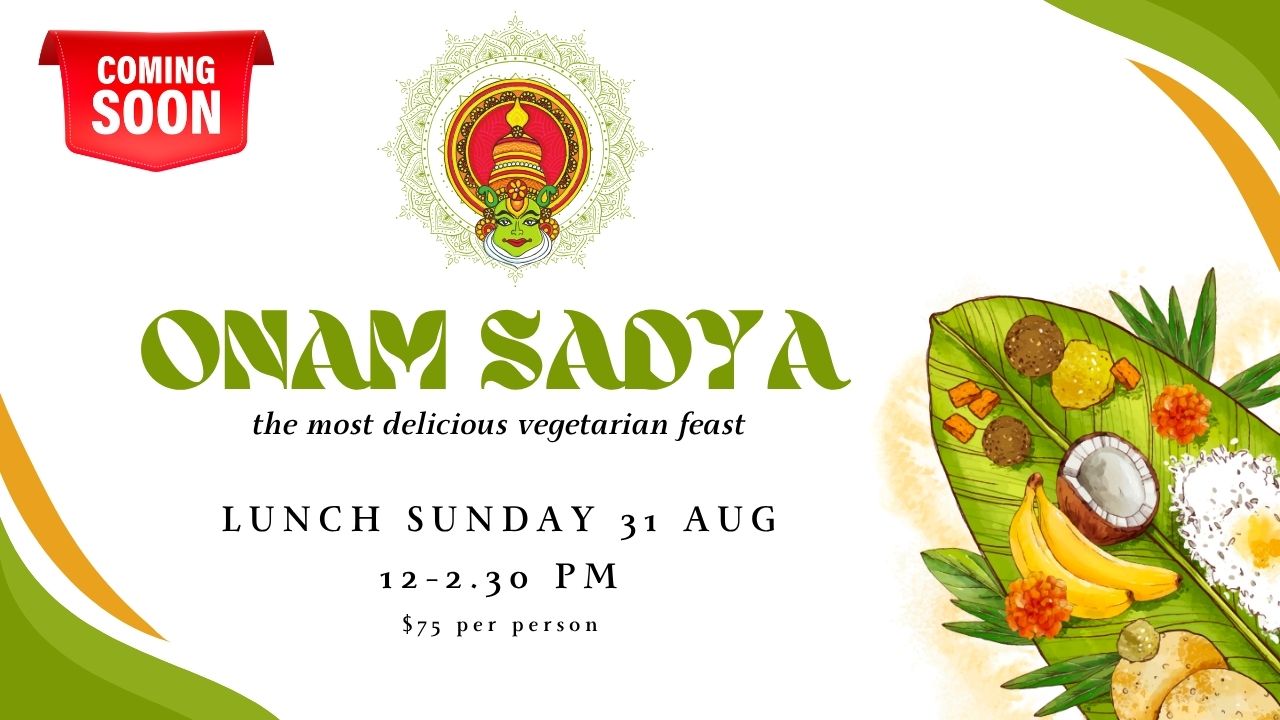 Celebrate Onam in true Kerala style with Malabar Darlinghurst’s lavish Onam Sadya feast – a festival of flavours served on the traditional banana leaf.